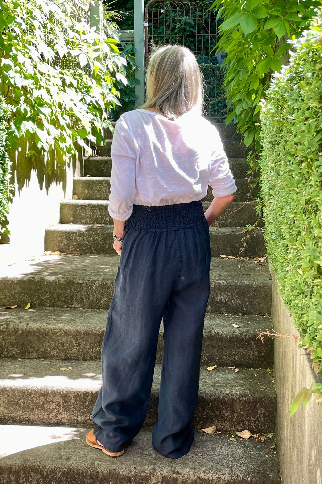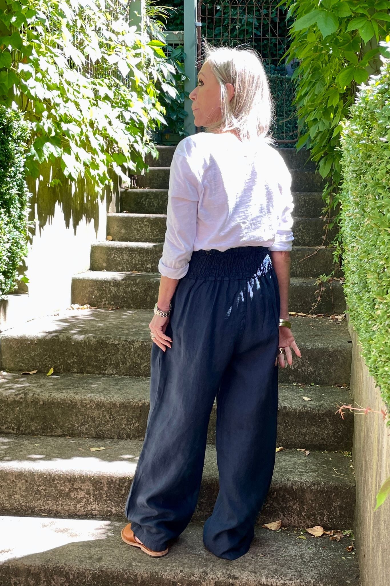 DESCRIPTION -crafted in Italy from 100% linen, the amara pants feature a soft wide elasticated waistband, handy side pockets, and a relaxed, loose fit with gently tapered wide legs for a stylish, baggy look. exceptionally comfortable, they pair beautifully with the atrani top also from italian cartel for a effortlessly chic outfit.