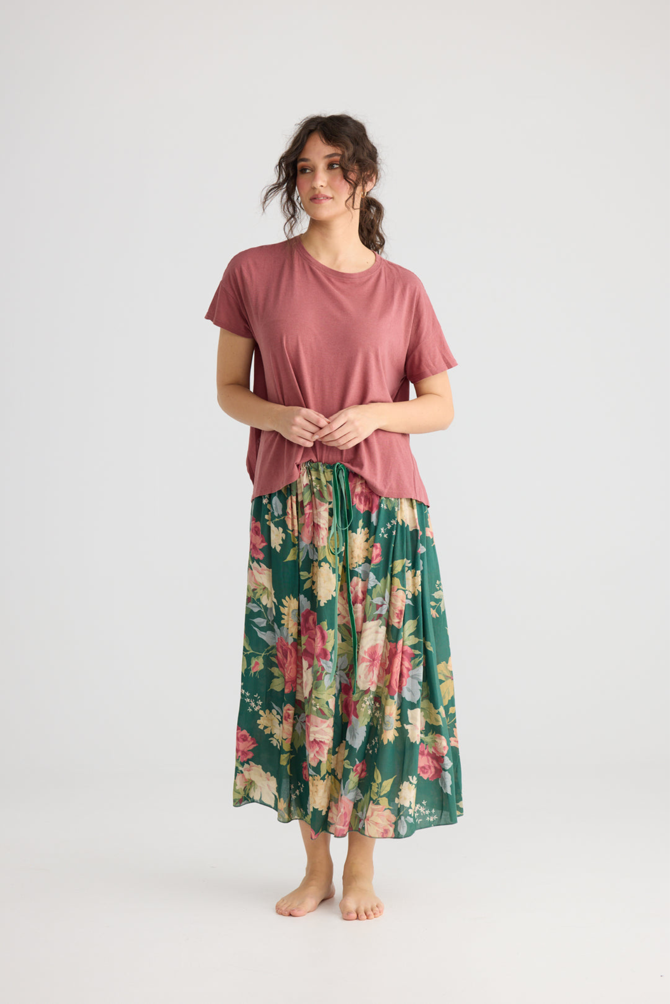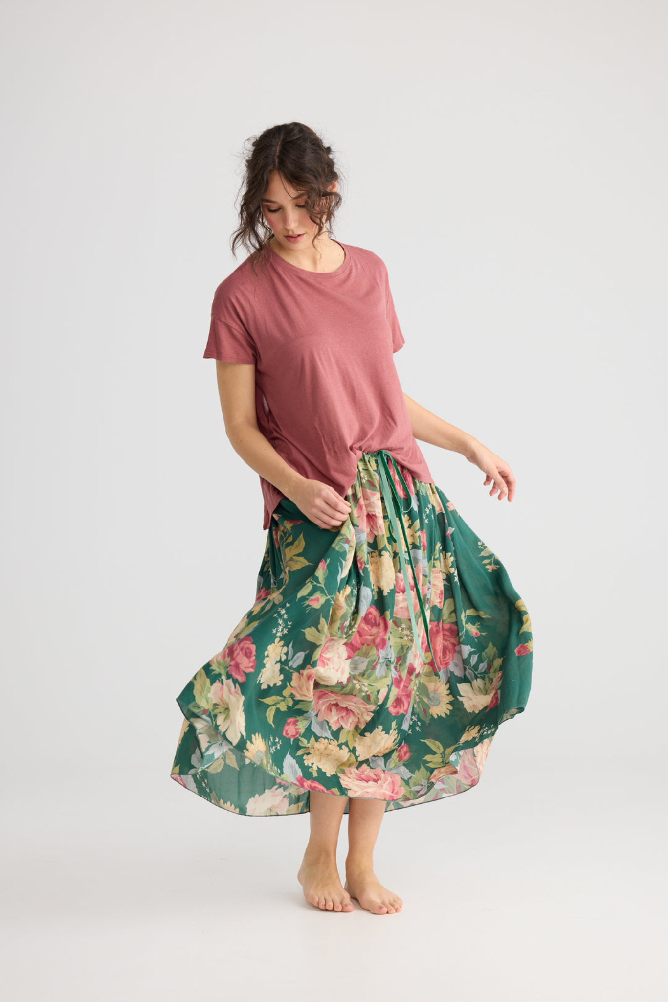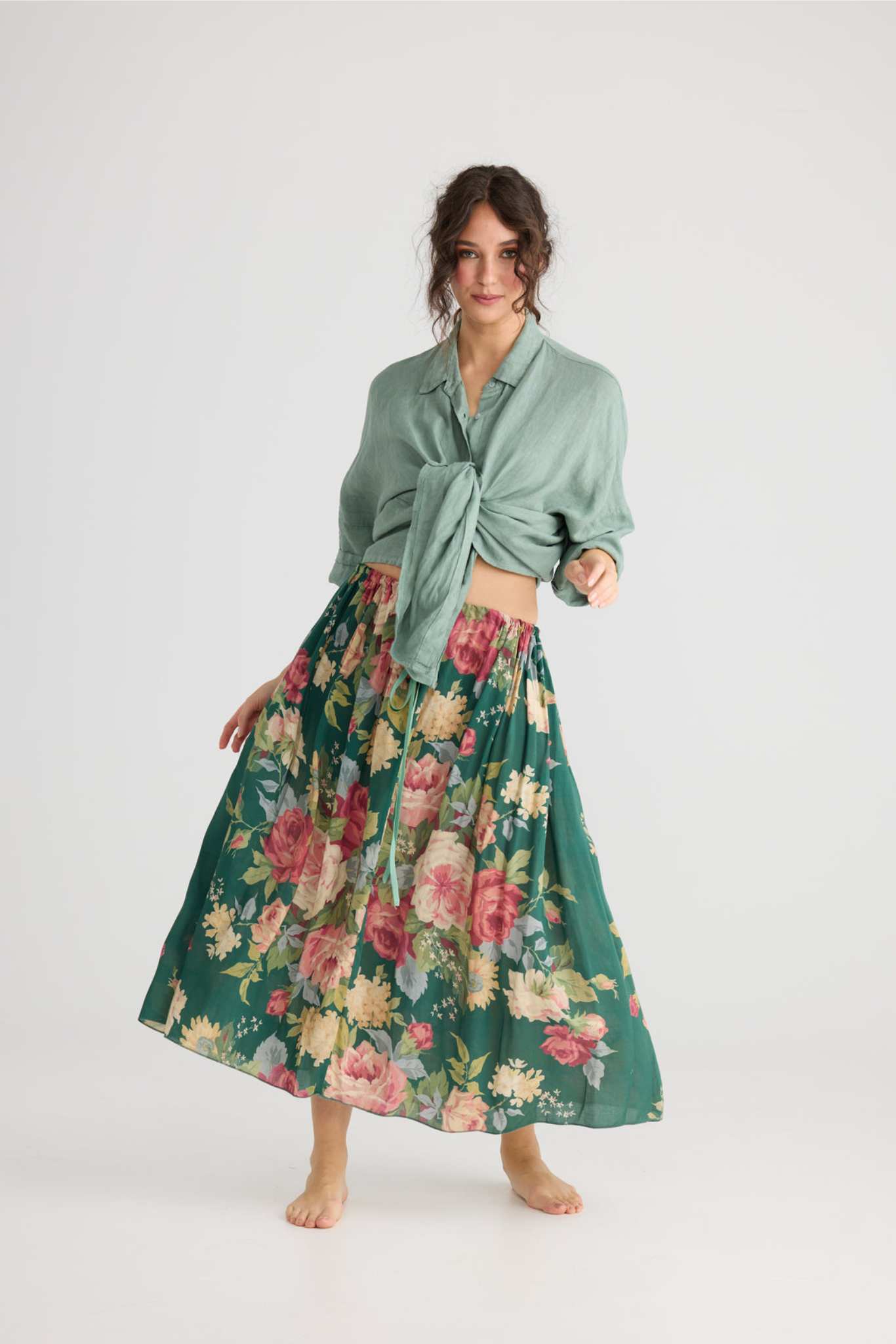 DESCRIPTION - celebrate colour and comfort in this vibrant floral skirt, featuring a botanical floral print that brightens any day. crafted from 100% cotton, it offers a relaxed one-size fit with an adjustable drawstring waist and softly gathered fabric that flatters beautifully. wear it fitted at the natural waist or loosen the tie to create a longer, more flowing silhouette that works perfectly for your body and style.
