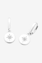 DESCRIPTION - the beck earring showcases a refined aesthetic with its etched star pattern and central crystal accent, suspended from a 1cm circular disc. a 2.5cm drop length. french hook closures ensure secure, hassle-free fastening. these earrings demonstrate thoughtful design principles that prioritise both visual appeal and practical wearability across diverse styling applications.