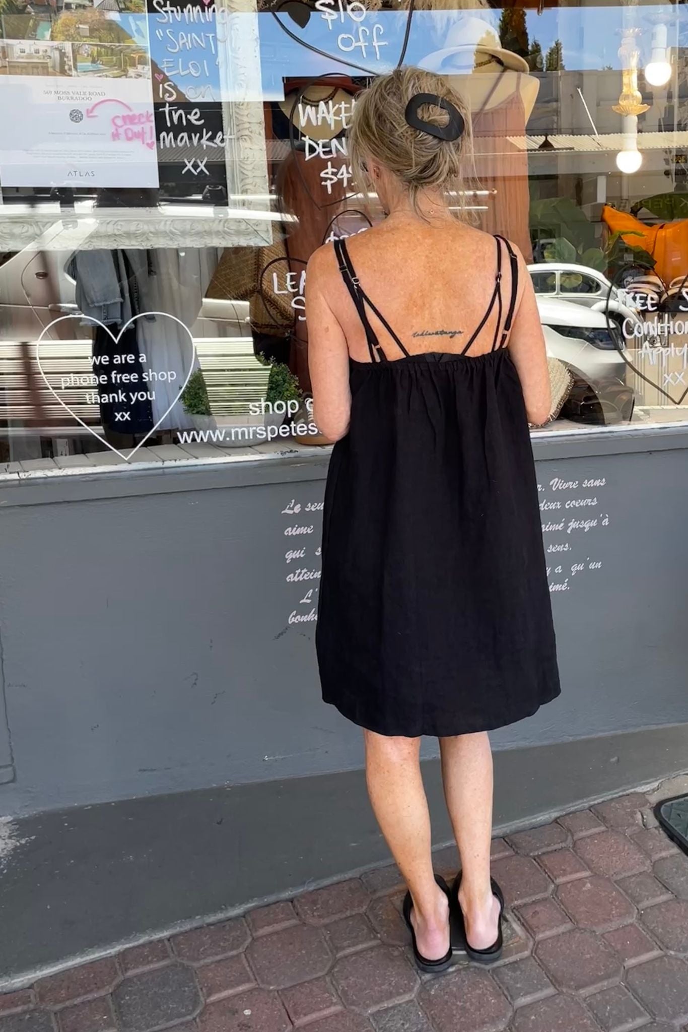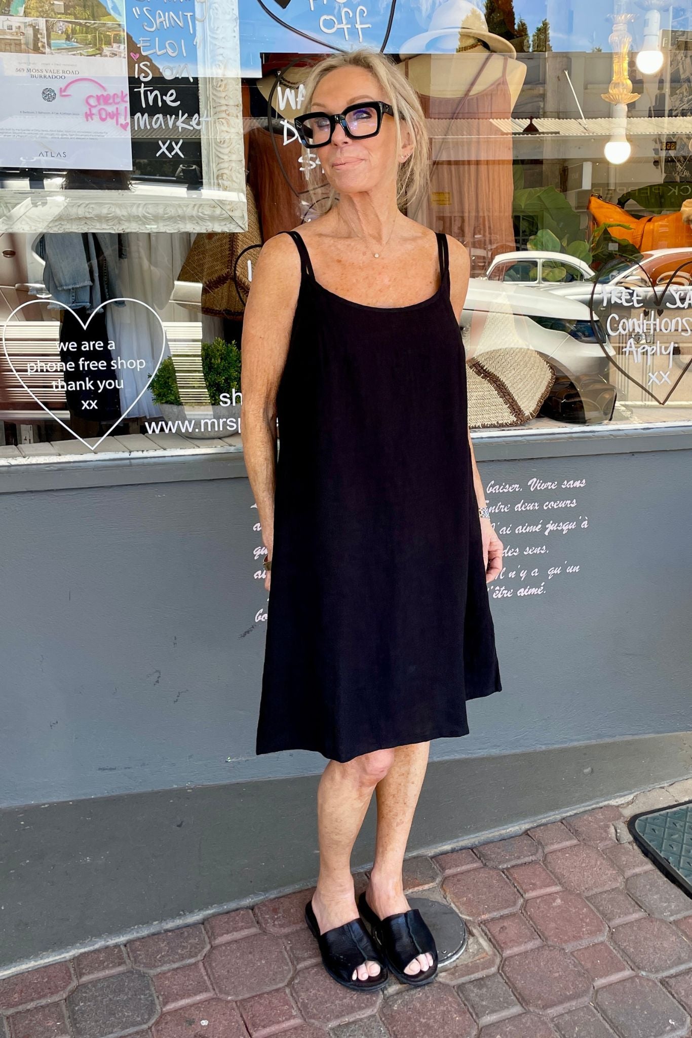 DESCRIPTION - effortlessly timeless and versatile, the linen slip dress is the epitome of comfort and style. with a flattering scoop neckline, adjustable straps, elasticised back, and relaxed shape, it can be layered or worn on its own.