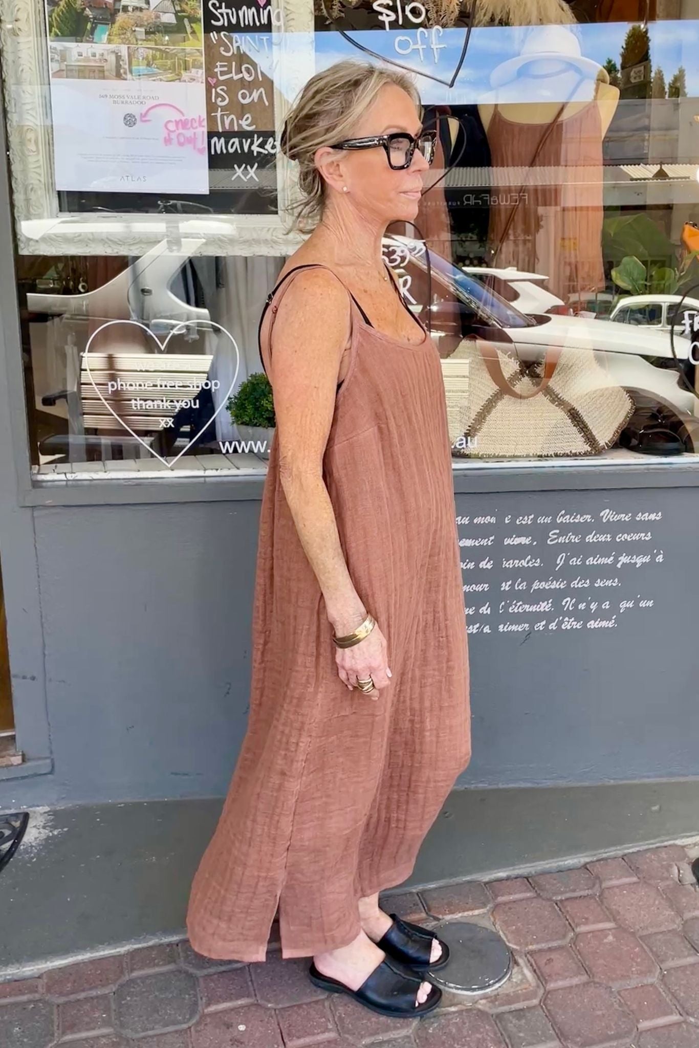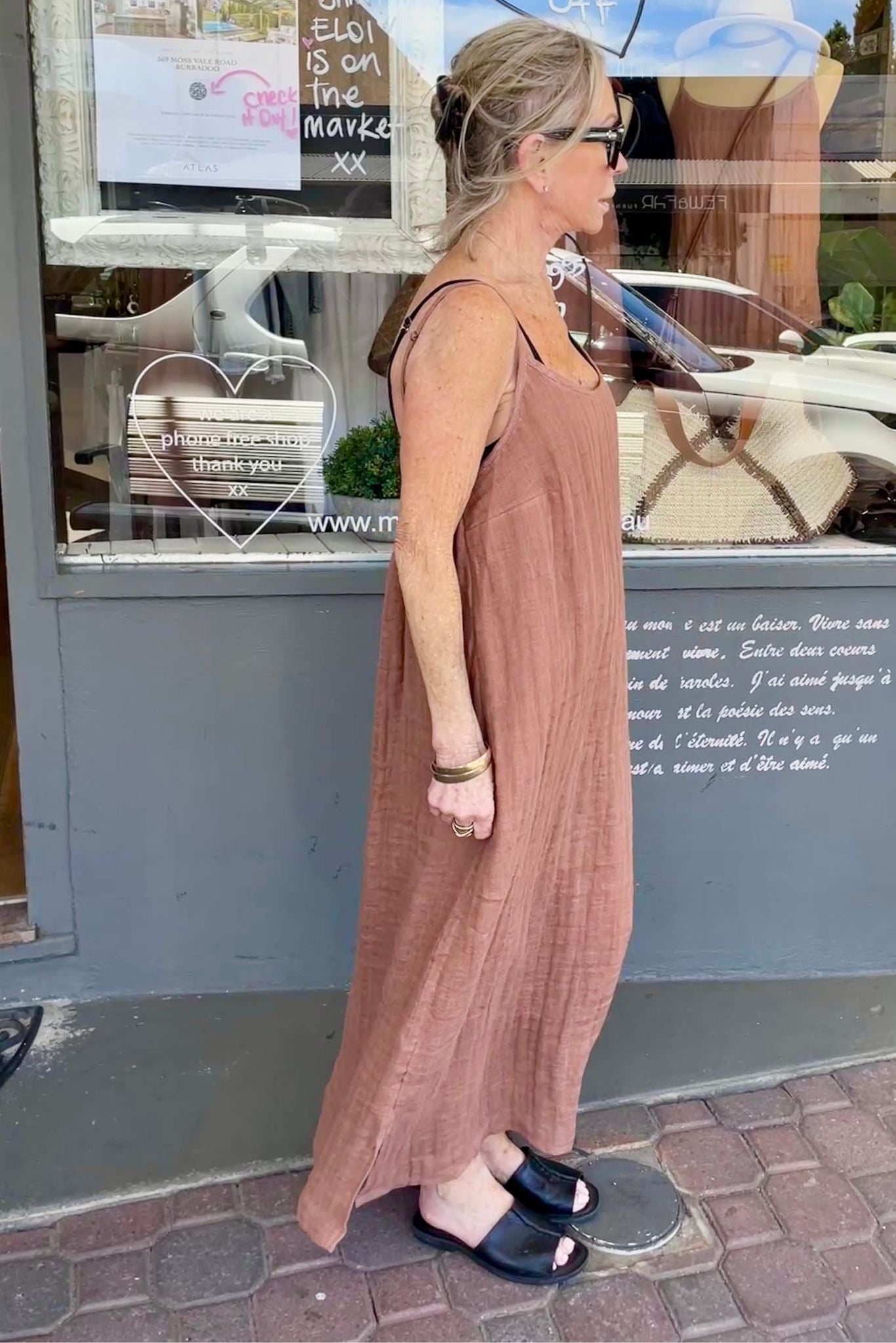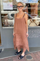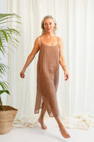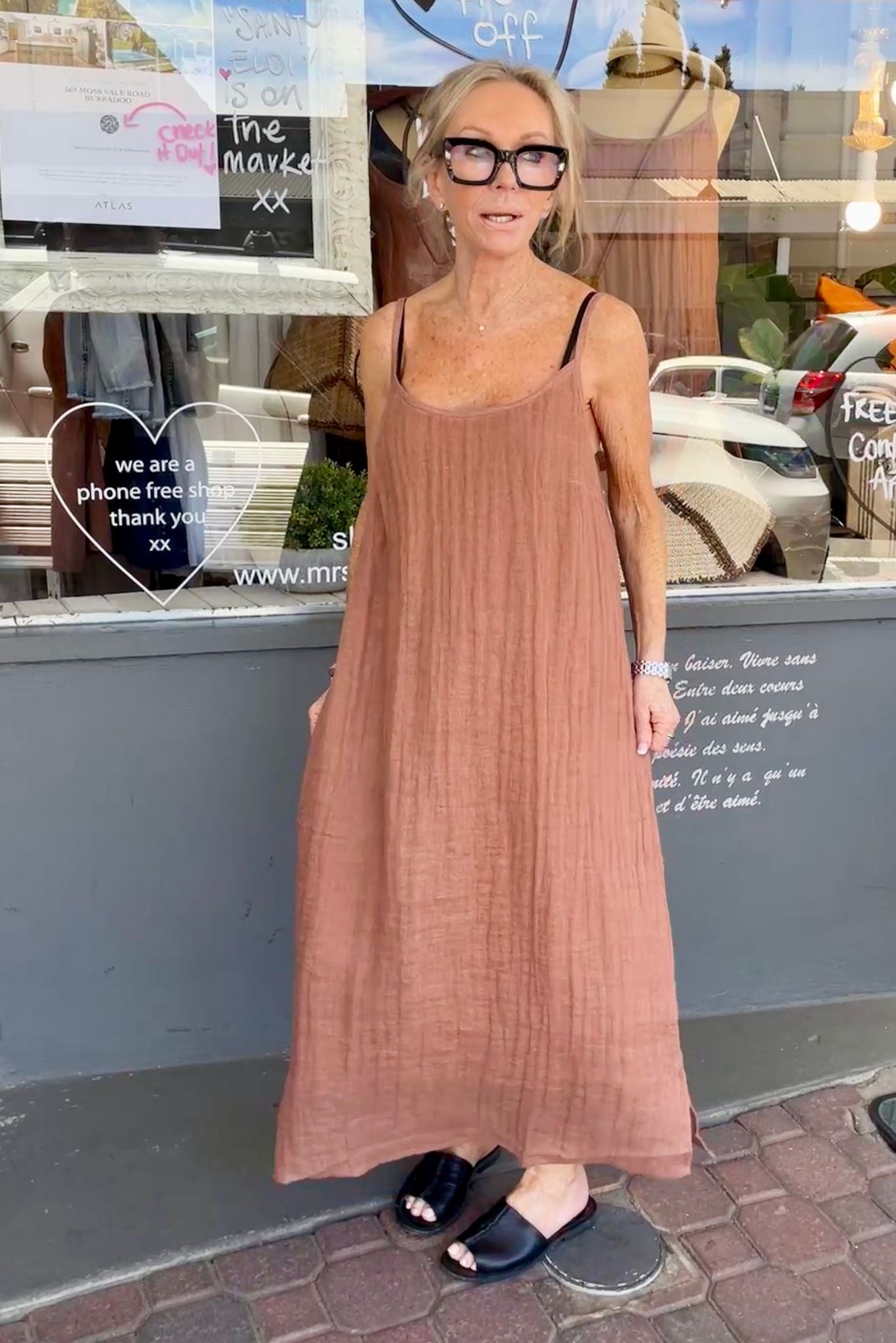 DESCRIPTION - the luxe linen midi - a versatile and breathable addition to the eadie lifestyle collection. with a soft scoop neckline, adjustable straps and an elasticised back, dressing is effortless and comfortable. made with 100% linen and featuring a partial slip, it's the perfect choice for both day and night.