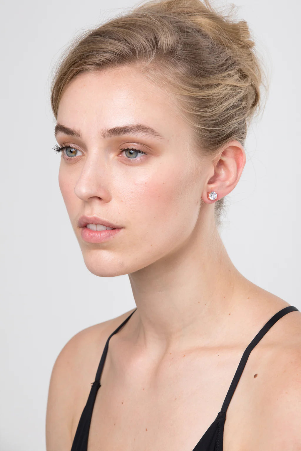 DESCRIPTION - a classic clear cz stud earring by liberte jewellery. these 8mm diameter studs are an essential piece for your jewellery collection.