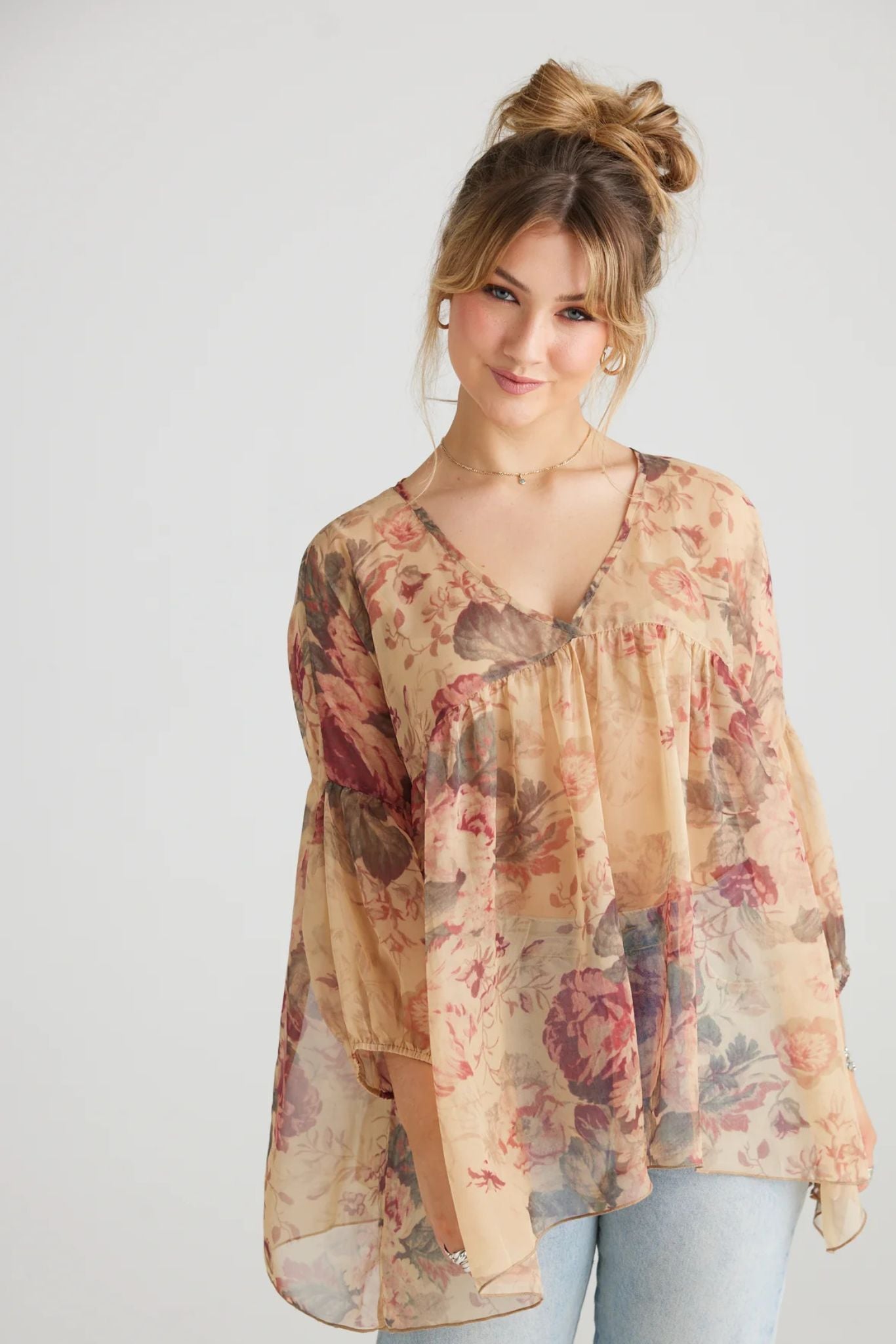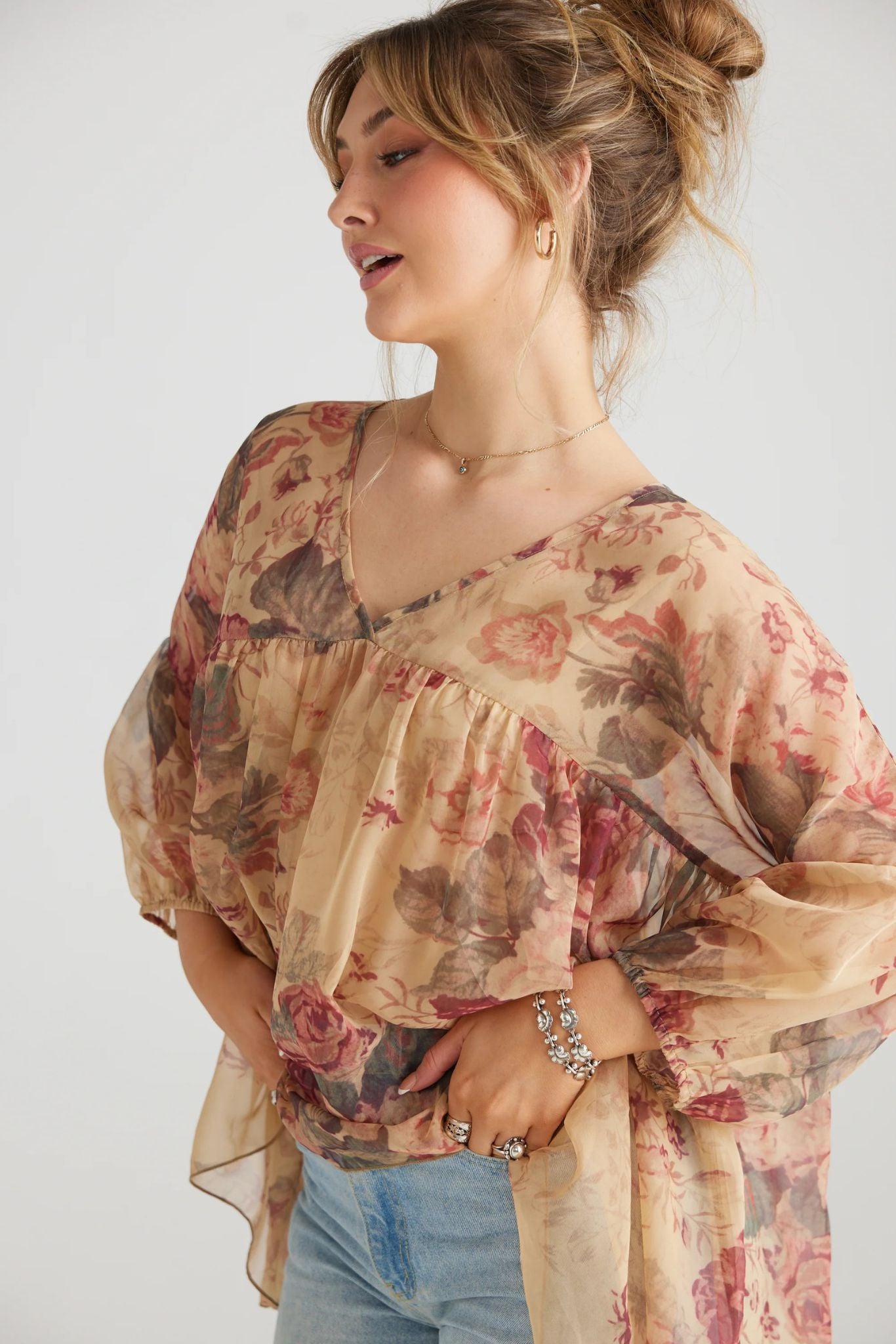 ariel chiffon top | antique rose floral