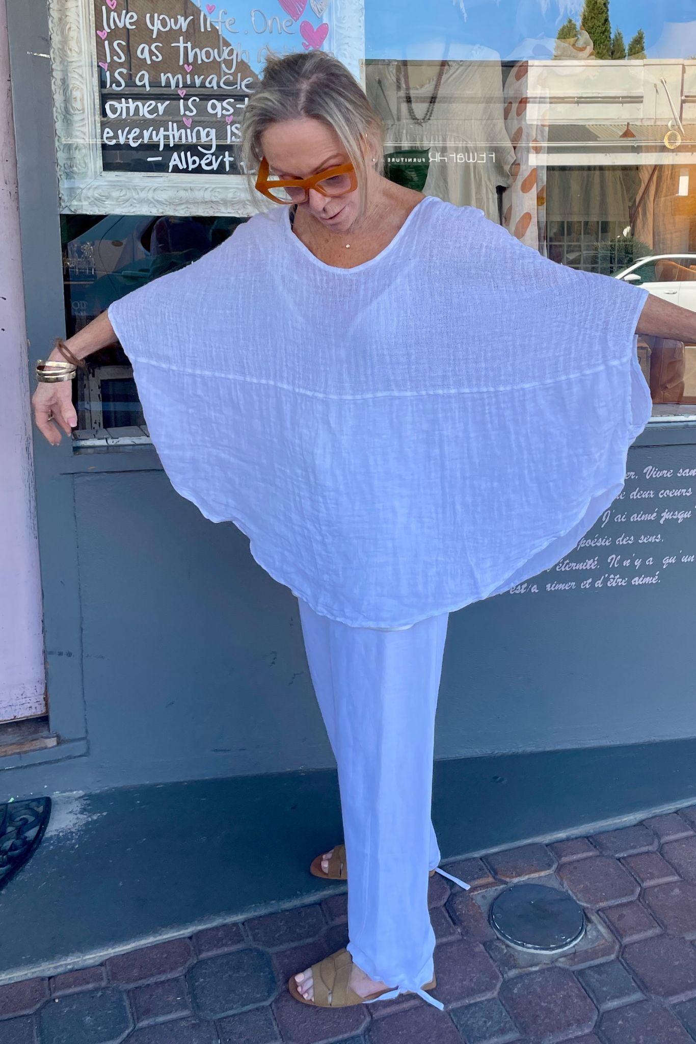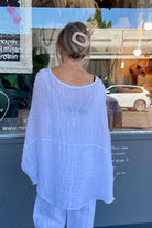 DESCRIPTION -the arezo top from italian cartel is authentically crafted in italy. designed for comfort and style, this relaxed tunic features an open neckline and is made from textured 100% linen, renowned for its breathability and natural cooling properties. its loose fit and tunic silhouette make this a versatile top that pairs beautifully with lightweight linen trousers, shorts, or a flowing skirt, making it an excellent choice for warm weather.