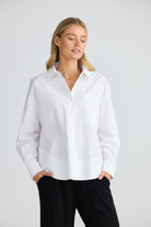 DESCRIPTION - the deluxe shirt from home love by holiday combines timeless style with everyday practicality. featuring a classic collar and button-up front, the standard fit provides a comfortable yet tailored silhouette, enhanced by a single chest patch pocket for subtle detail and convenience. its curved hemline adds a modern touch, allowing for effortless layering or wearing untucked. made from lightweight cotton fabric, this shirt delivers exceptional breathability and softness, making it a great choice for all-day wear in warmer climates or layered looks throughout the year.