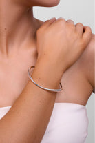DESCRIPTION - elevate your jewellery collection with this contemporary silver bangle, designed for seamless stacking. the organic wave silhouette delivers refined sophistication while maintaining versatility across multiple styling combinations. crafted with attention to detail, this piece serves as a timeless foundation for curated wrist arrangements.