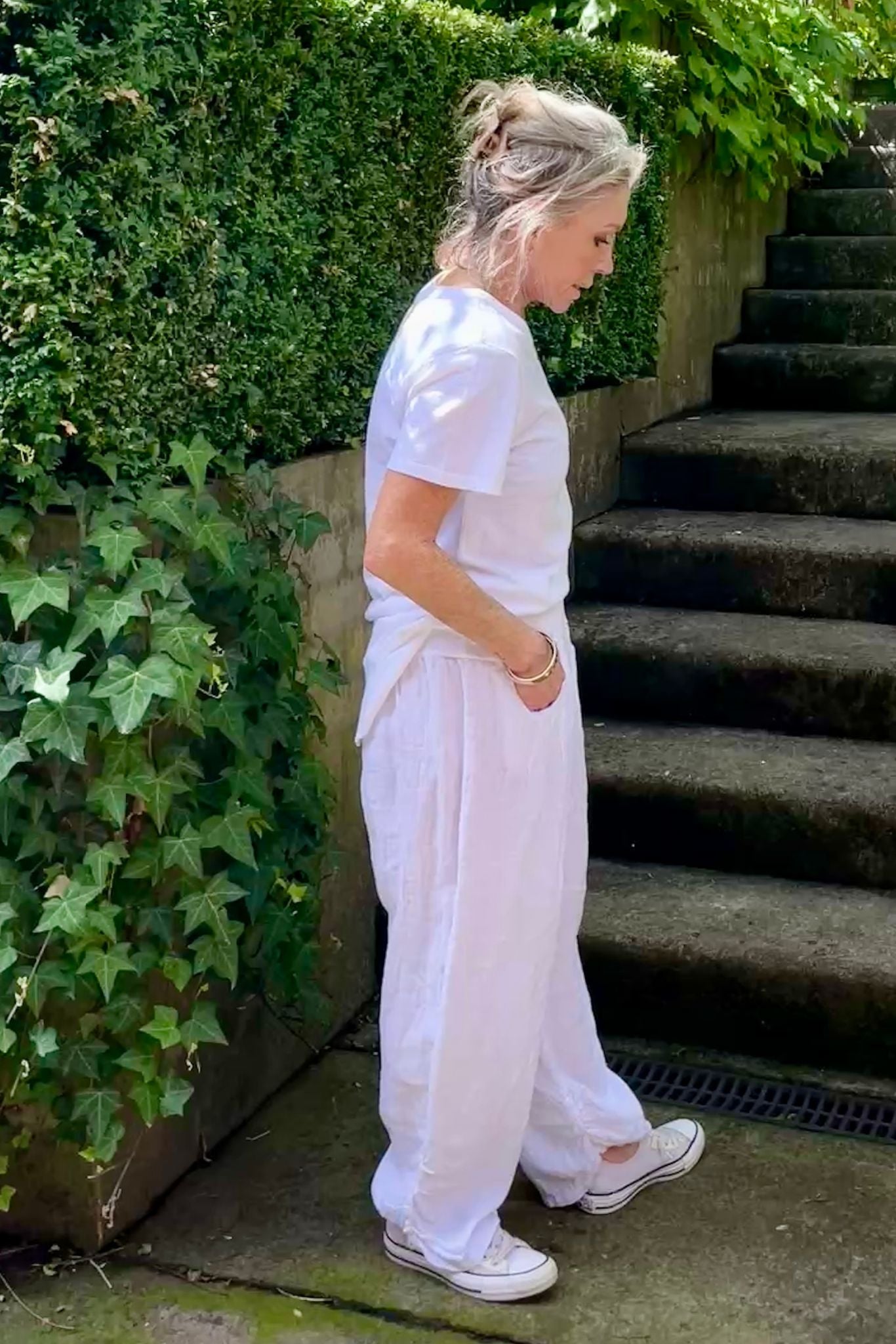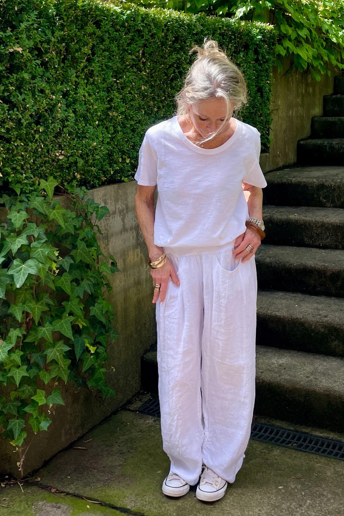 DESCRIPTION -crafted in Italy from 100% linen, the murano pants feature a soft wide jersey elasticated waistband, handy side pockets, and a relaxed, loose fit with gently tapered wide legs with pleated tuck detail at the hem for a stylish, baggy look. exceptionally comfortable, they pair beautifully with the atrani top also from italian cartel for a effortlessly chic outfit.