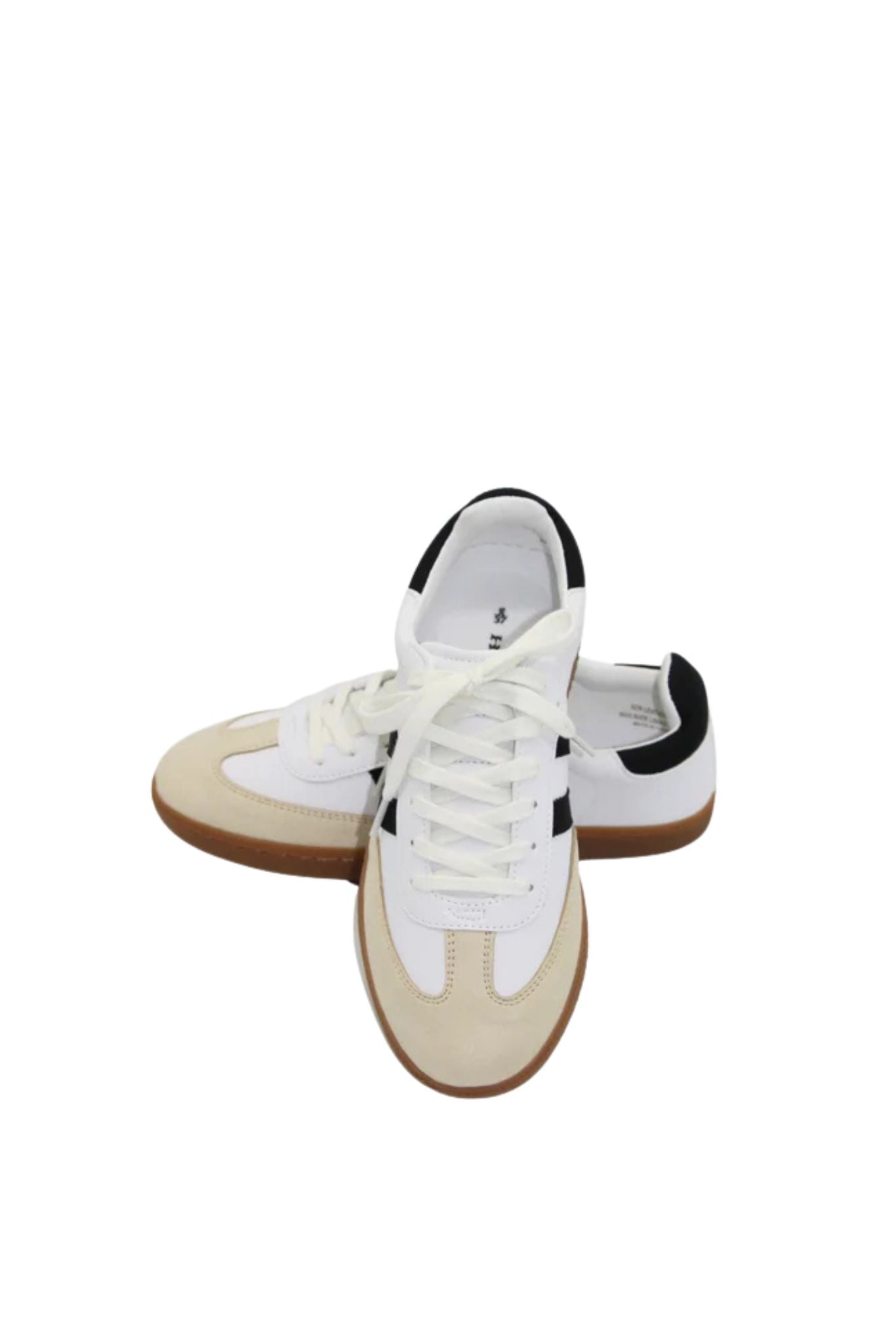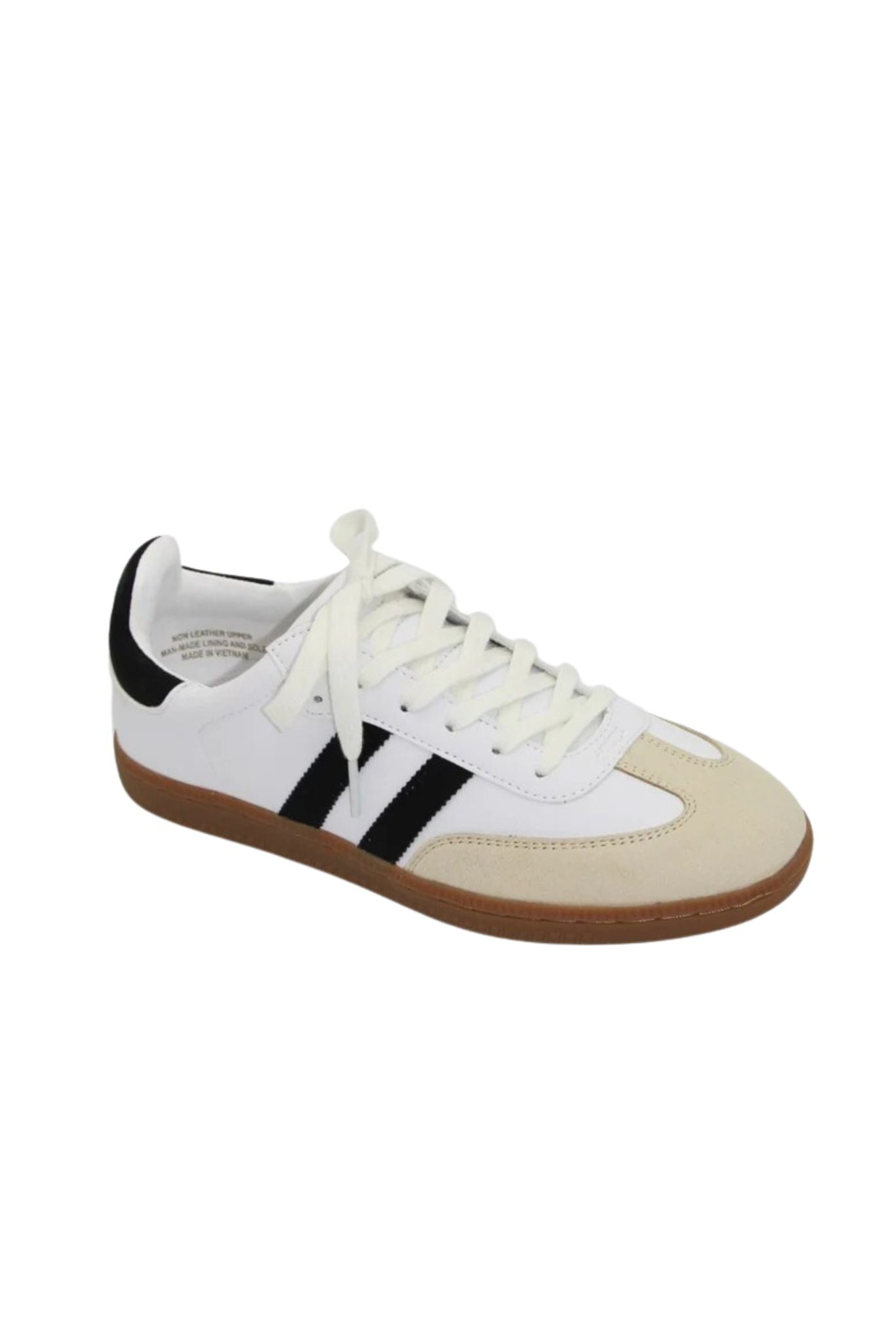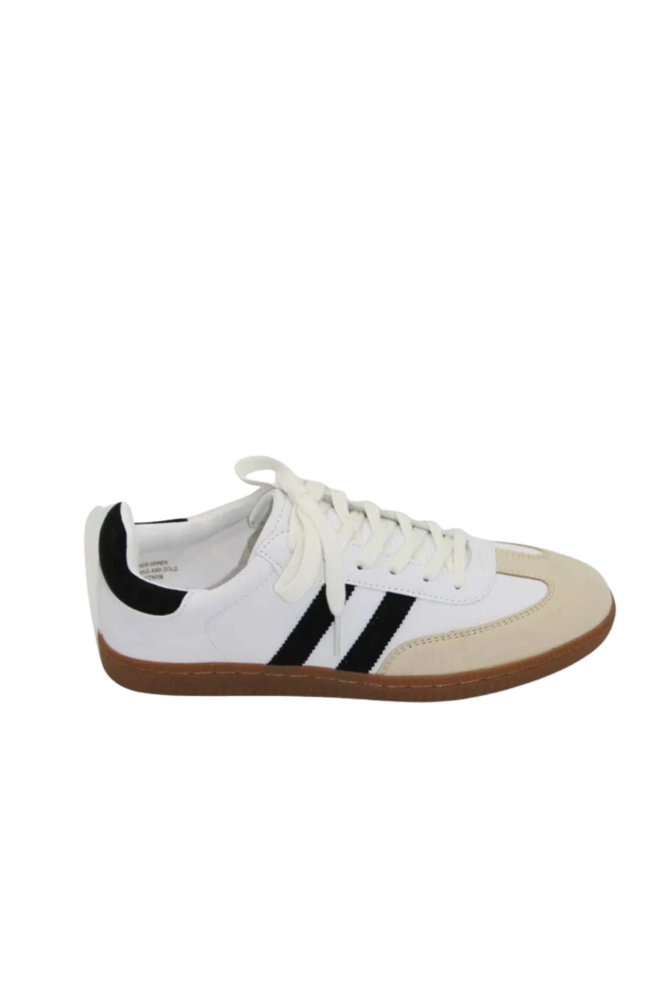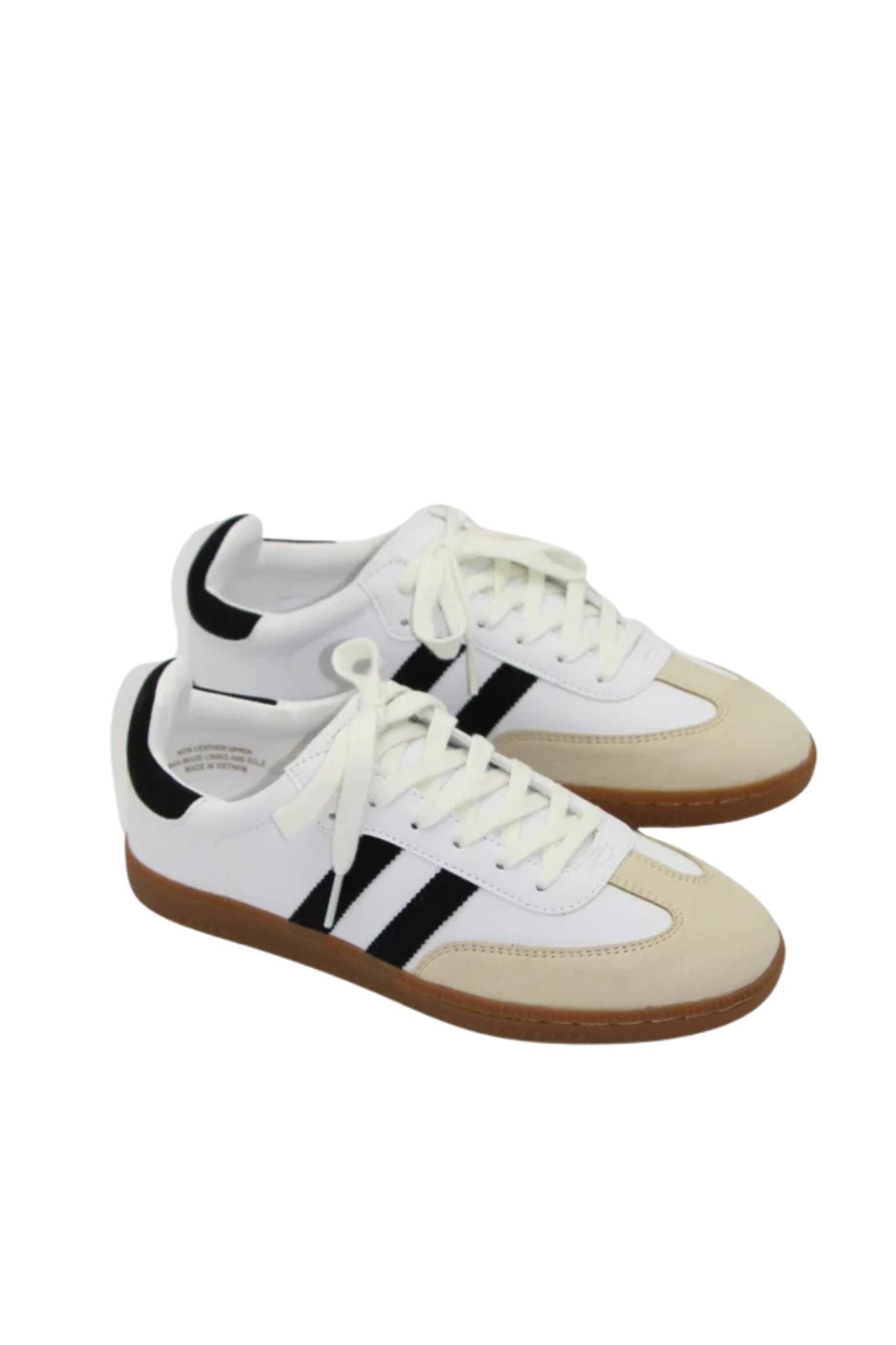 DESCRIPTION - this on-trend sneaker features a lace-up design and a streamlined, slim silhouette. the upper is made from soft faux suede with a distinctive stripe detail on the side, accompanied by matching laces. it sits on a lightweight gum sole for added comfort. designed in Australia and produced in vietnam, this shoe blends modern style with quality craftsmanship.