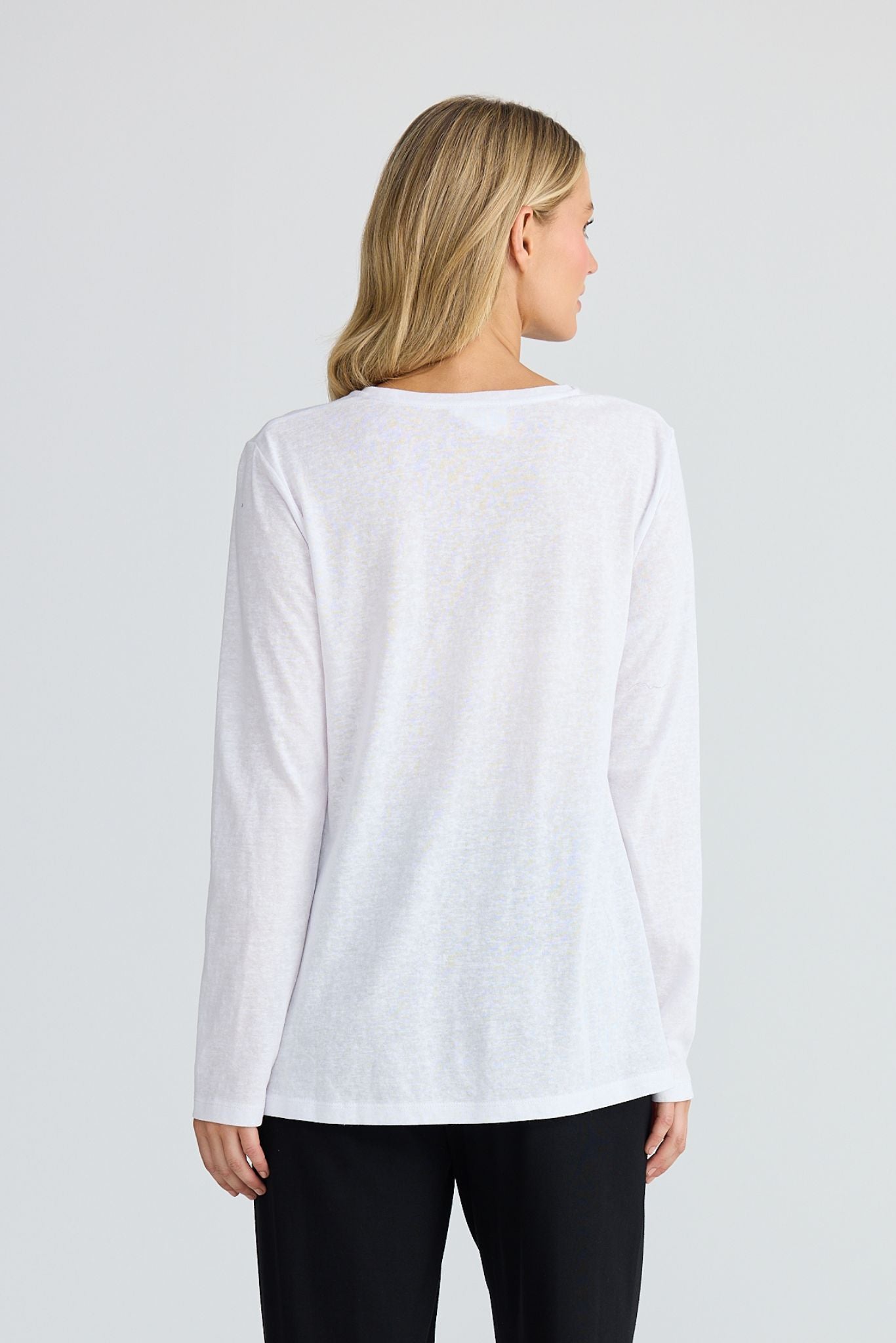 DESCRIPTION - the sana LS top in winter white from home love by holiday is designed to keep you comfortable throughout the seasons. with its long sleeves and relaxed fit, this top offers ease of movement and a cosy feel without sacrificing breathability. crafted from a lightweight cotton blend, helping you stay comfortable whether you're layering up or enjoying milder spring days. its soft fabric and gentle structure make it an ideal choice for everyday wear, a clean, simple design.
