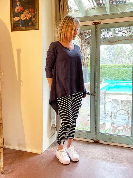 DESCRIPTION - the willow tee is an oversized long sleeve cotton-jersey tee with a delicate scoop neck. a feminine cut featuring a hi-low hem. easily worn with sleeves folded to the elbow in spring or layered in cooler months. dress this one up or down with trainners.