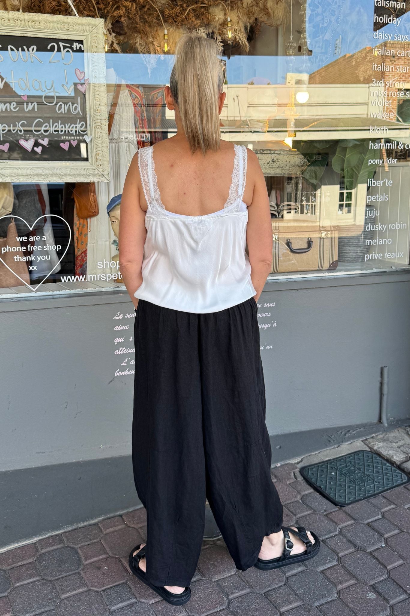 DESCRIPTION -crafted in Italy from 100% linen, these fern pants feature an elasticated waistband, handy side pockets, and a relaxed, loose fit with gently tapered legs for a stylish, baggy look. exceptionally comfortable, they pair beautifully with the latina top also from italian cartel or our lois cami for a effortlessly chic outfit.